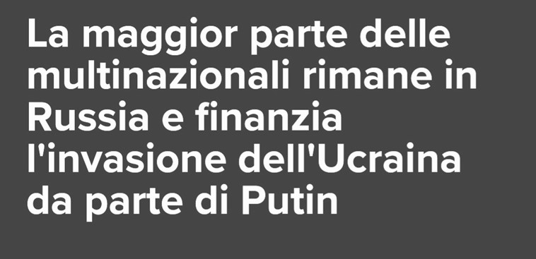 «La Russia ha bisogno di grande liquidità continua per rifornire l’esercito. Continuando le operazioni in Russia, le imprese internazionali stanno favorendo lo sforzo bellico del paese. Le aziende che sono rimaste pagano le tasse aziendali e sui salari al governo russo, nonché gli stipendi ai loro circa 690.000 dipendenti in Russia.»