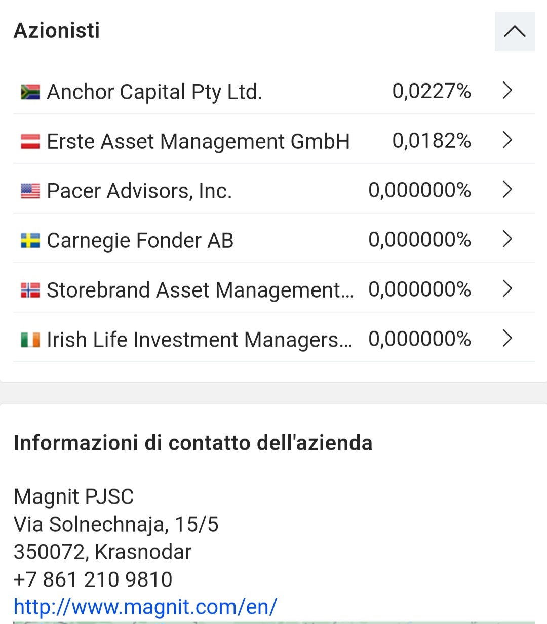 Proseguiamo con Magnit, colosso “russo” specializzato nella vendita al l’ingrosso e al dettaglio.