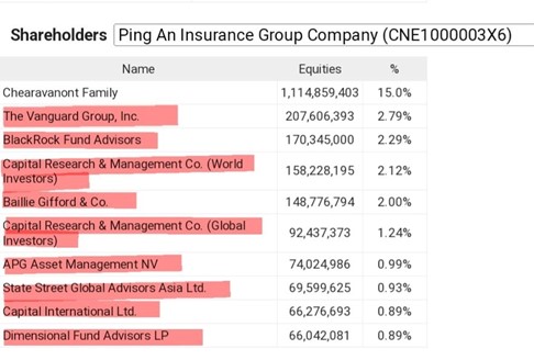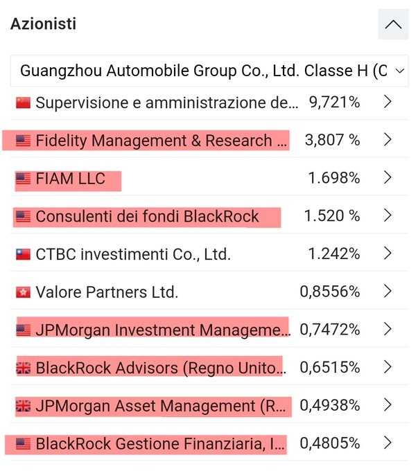 Aprendo l’azionariato di questo colosso, si scopre che all’interno, troviamo ancora i soliti noti. Fermo restando che per avere potere decisionale non serve avere la maggioranza delle azioni, ci si dovrebbe domandare cosa ci fanno gli angloamericani all’interno di una delle più grandi holding cinesi.