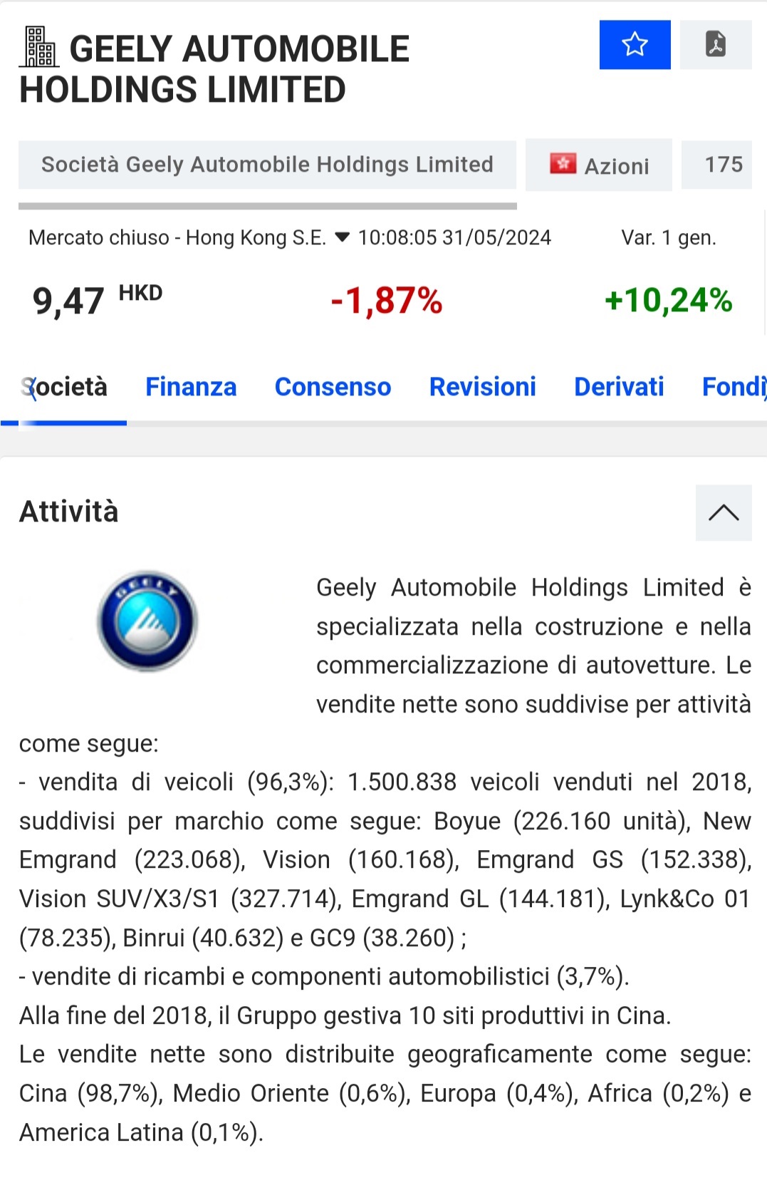 A questo punto non possiamo parlare del gigante dell’industria automobilistica cinese, la Geely Automobile Holdings Limited. Come possiamo vedere, gli azionisti della Geely chi sono? Tiriamo a indovinare?