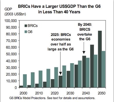 Così facendo, stando anche a quanto affermato da Ron Caldwell (economista scomparso nel 2016) la Goldman Sachs diede vita ad un nuovo sistema di spostamento di capitali per intensificare la sua presenza e quella dei suoi investitori all’interno del cosiddetto blocco orientale. Al momento della pubblicazione, i BRICS comprendevano quattro paesi: Brasile, Russia, India e Cina, le cui rispettive banche centrali erano già governate dalla Banca dei regolamenti internazionali (Rothschild) e che tutt’ora le controlla, come le altre 156. Nel 2003, O’Neill stilò un nuovo documento per la Goldman Sachs intitolato “Dreaming with BRICS: The Path to 2050” in cui la banca prevedeva che le economie combinate dei BRICS sarebbero state in costante crescita, grazie anche ai nuovi spostamenti di capitale dell’alta finanza.