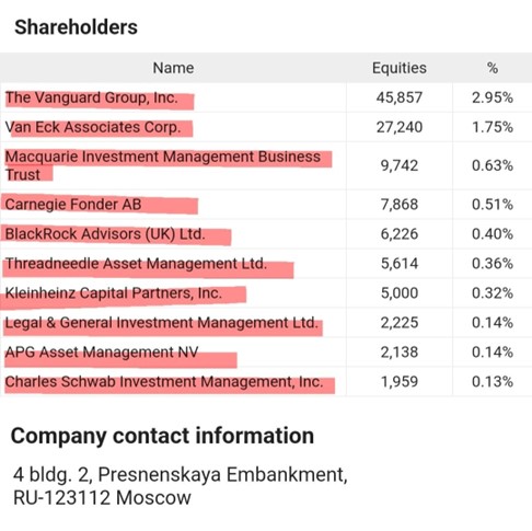 Si potrebbe andare avanti per ore, ci sono centinaia e centinaia di altre società russe in mano ai soliti noti, ma mi fermo qui poiché vi è la necessità di evidenziare ancora un altro aspetto, probabilmente il più importante. Si sottolinea che i dati sugli azionariati sono reperibili direttamente dai portali ufficiali delle rispettive società, resi noti anche dalla piattaforma MarketScreener a questo indirizzo (https://it.marketscreener.com/), la più grande e completa piattaforma finanziaria al mondo che fornisce dati e informazioni su tutte le corporations, nonché in diversi libri postati alla fine nella bibliografia.