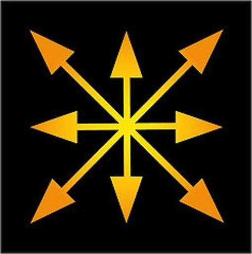 E non è un caso che Dugin sceglie la “Stella del Caos”, un simbolo esoterico occulto composto da 8 frecce in uno schema radiale, come simbolo per il suo vero progetto: l’Eurasia. Nelle immagini sottostanti, a sinistra, la stella del caos; a destra, il simbolo dell’Eurasia.