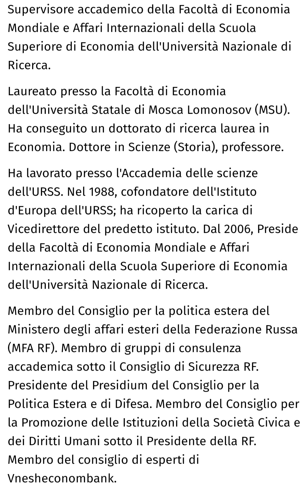 E se a questo, uniamo la visione di un altro personaggio della “fazione” Dugin, ovvero il professor Sergey Karaganov, conosciuto in certi circoli di politica estera come il “Kisinger russo” (preside della Facoltà di Economia Mondiale e Affari Internazionali presso la Scuola Superiore di Economia dell’Università Nazionale di Ricerca) nonché (udite udite) membro della Commissione Trilaterale della famiglia Rockefeller dal 1998 e nonché (udite udite) ex membro del direttivo del Council on Foreign Relations Americano e membro del RIAC (Il think tank russo di cui abbiamo parlato negli altri articoli, tentacolo russo del CFR appunto) (per i più scettici potete visitare la pagina del RIAC a lui dedicata a questo link: https://russiancouncil.ru/en/sergey-karaganov/ ) il quale sostiene la necessità di un partenariato sostenuto da Pechino, basato su un sistema di legami economici, politici e culturali tra diversi stati, insieme alla Cina, svolgendo il ruolo di primus inter pares, atti ad assorbire l’Europa.