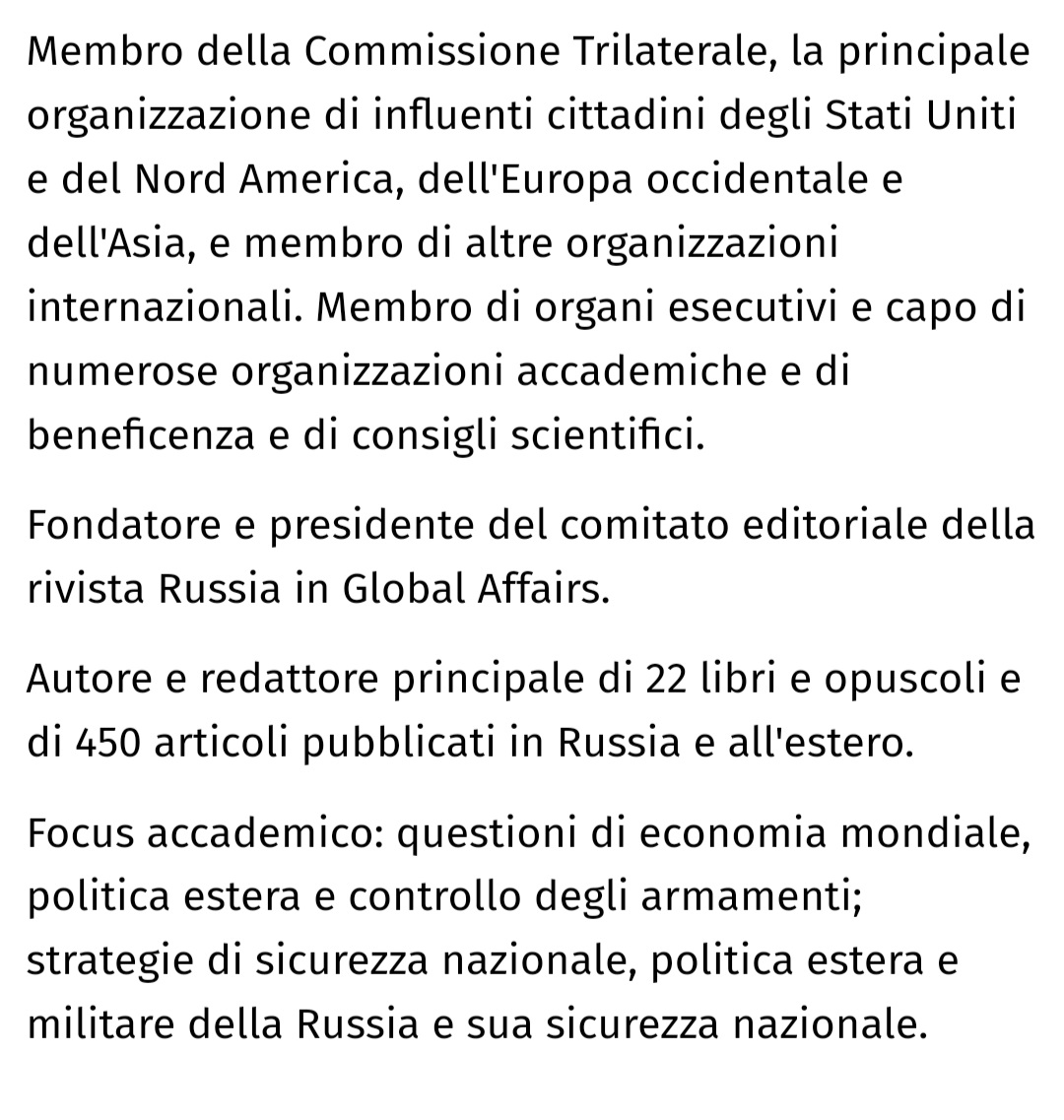 Naturalmente, come esposto nella prima parte dell’articolo, tutto questo è fisiologico data la sua stessa provenienza. E tutto questo la dice lunga sulla perfetta e identica visione d’intenti che intercorre fra lui, Putin e coloro che stanno al vertice e che li manovrano.