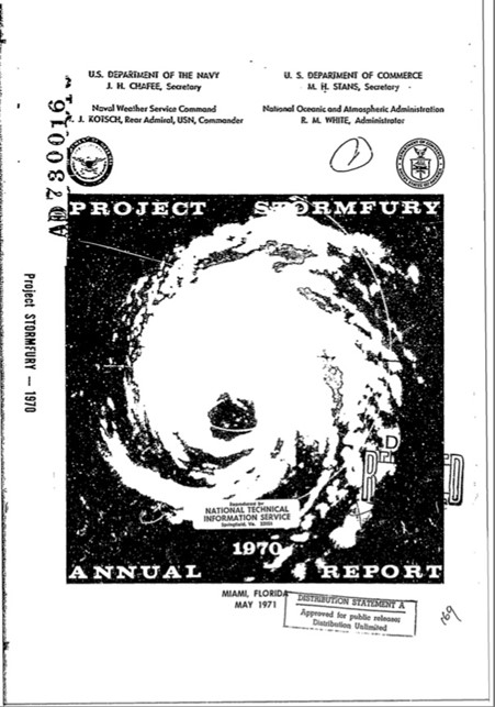 Il progetto Stormfury, diretto dalla National Weather Service e dal Navy Department, si è reso protagonista dell’inseminazione di tre uragani (ufficialmente, bisogna vedere anche gli altri): nel 1961 a Beulah; nel 1963 a Debbie; nel 1969 a Ginger. In seguito a queste inseminazioni, i venti degli uragani si sono drasticamente ridotti, tuttavia c’è un problema. Sebbene siano state elaborate misure di salvaguardia per ridurre al minimo la possibilità che le semine possano far deviare un uragano dalla rotta e colpire la terraferma, nessuno ha la certezza che questo possa non avvenire. In altre parole, vi sono diverse prove che comprovano l’inseminazione degli uragani come possibile arma.