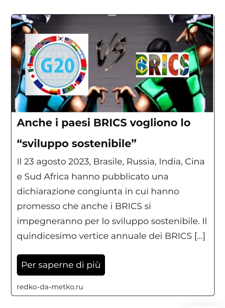 Sebbene gli stessi BRICS seguano, sulla base dei loro documenti finali, gli obiettivi dello sviluppo sostenibile. Per approfondimenti cliccare su questo link: