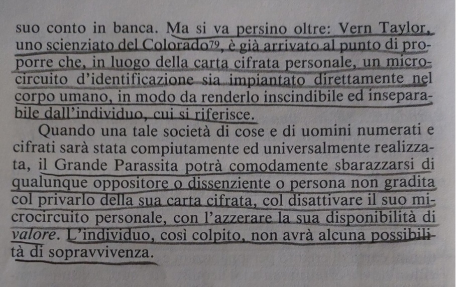 Non è un caso, dopotutto, la farsa pandemica è servita proprio a questo, testare il livello di asservimento dei popoli. Una volta preso atto del fatto che non vi sono reazioni degne di nota o comunque in grado di mettere in difficoltà il potere, l’élite ha messo piede sull’acceleratore prima con la somministrazione dei sieri sperimentali (per un virus mai isolato) i quali hanno causato e tutt’ora stanno causando morti nel più totale silenzio mediatico (attraverso la distrazione con ogni mezzo possibile) e ora sul piano digitale che abbraccia identità, valuta, controllo e assistenzialismo funzionale ad un asservimento ancora maggiore della popolazione mondiale: “Non avrai niente e sarai felice”. Tutto questo è stato l’anticamera del prossimo futuro ormai non più così lontano.